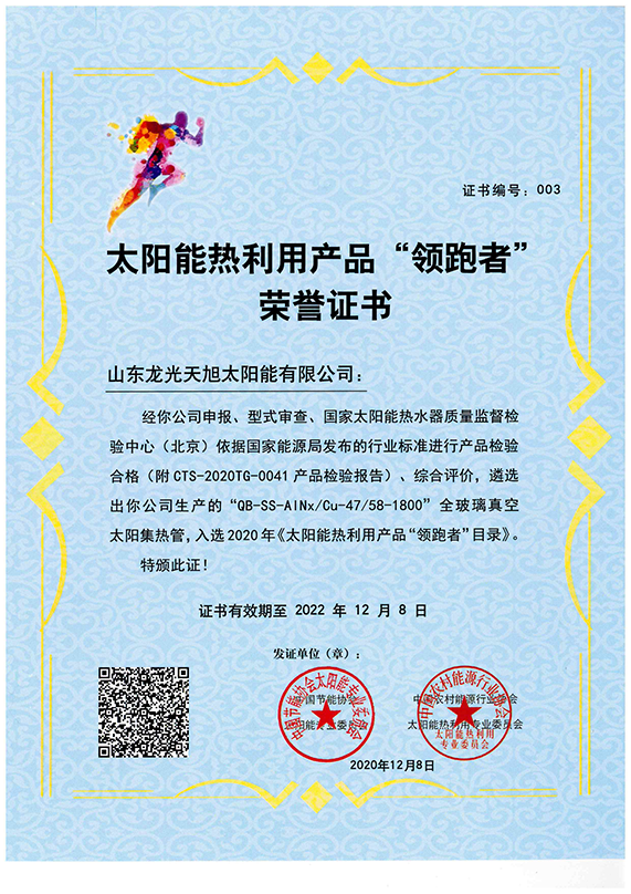 • 太阳能热利用产品“领跑者”